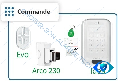Le clavier (code ou badge), lui, offre un contrôle plus complet : saisie de codes utilisateurs, gestion des modes (présent/absent) et consultation de l’état du système, pratique à l’entrée d’un logement ou d’un local.
